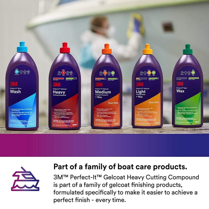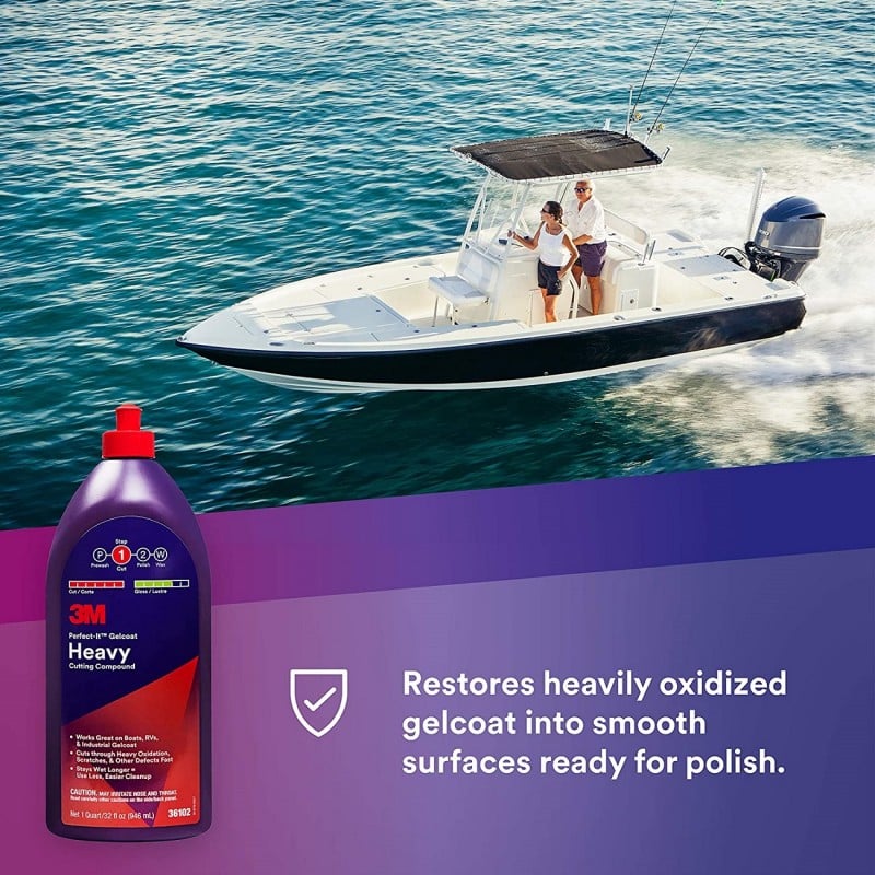 3M Perfect-It Gelcoat Heavy Cutting Compound works great on boats, caravans and industrial gelcoats.
