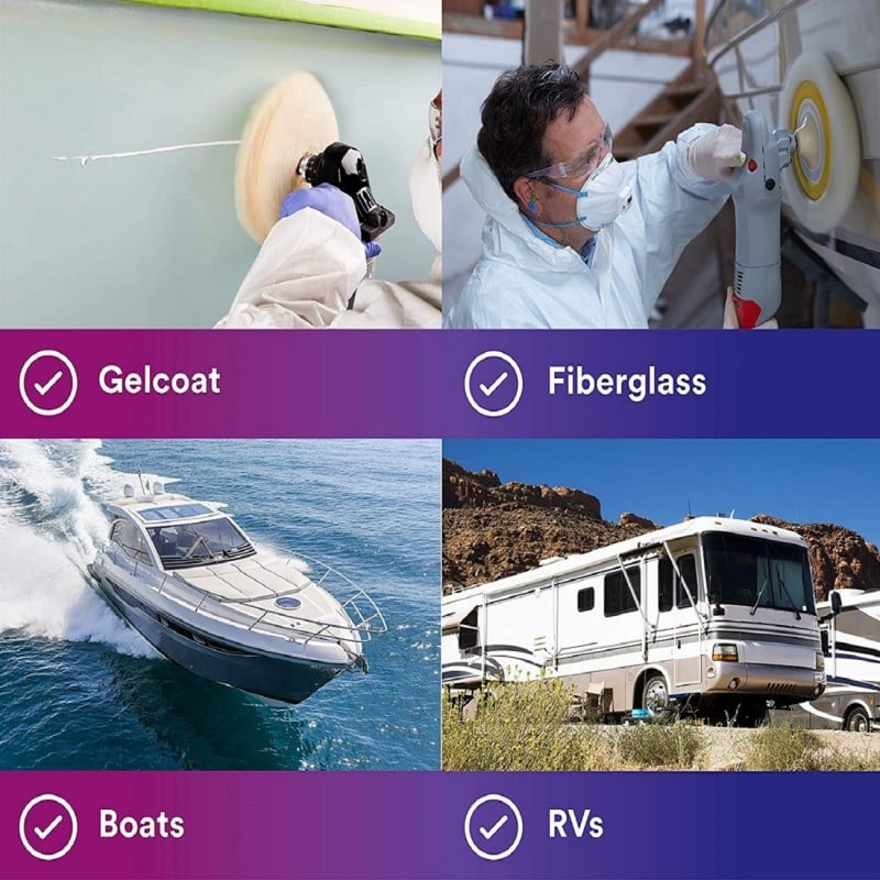 Boat wax and cleaner suitable for fiberglass repair, gel-coat restoration and general boat detailing.
