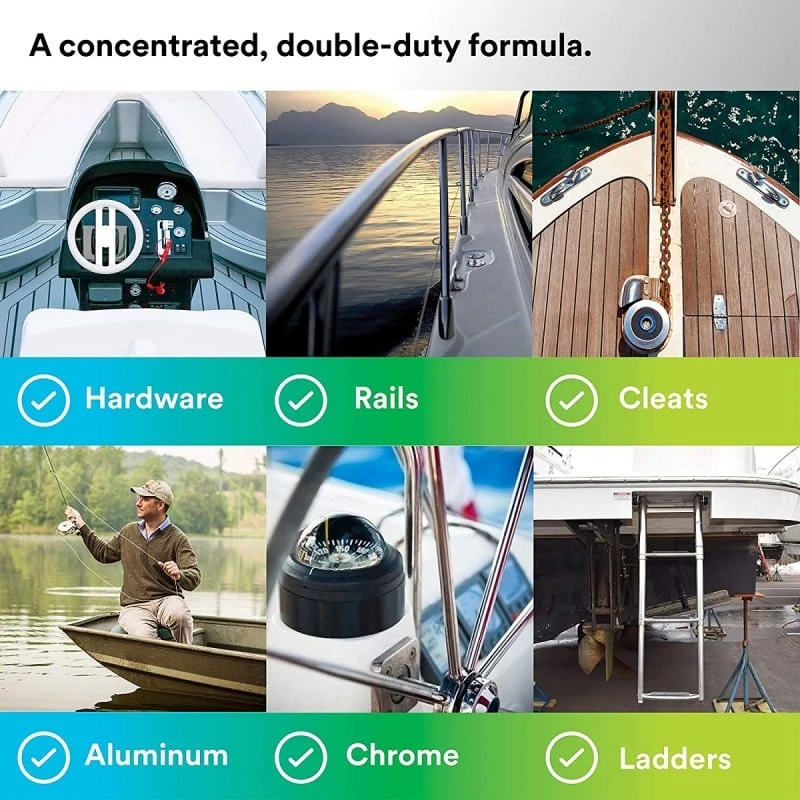 Designed to perform in harsh marine environments, it is suitable for use on interior and exterior stainless steel, brass, bronze, copper, chrome and other metals.