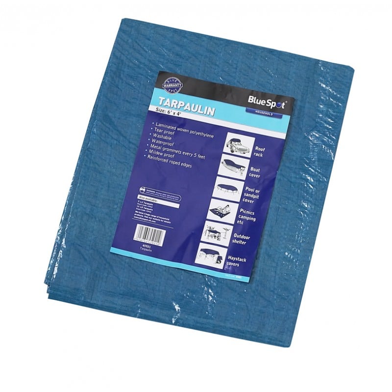 The blue spot tools waterproof tarpaulin is tear proof and features welded hems for increased strength and durability.